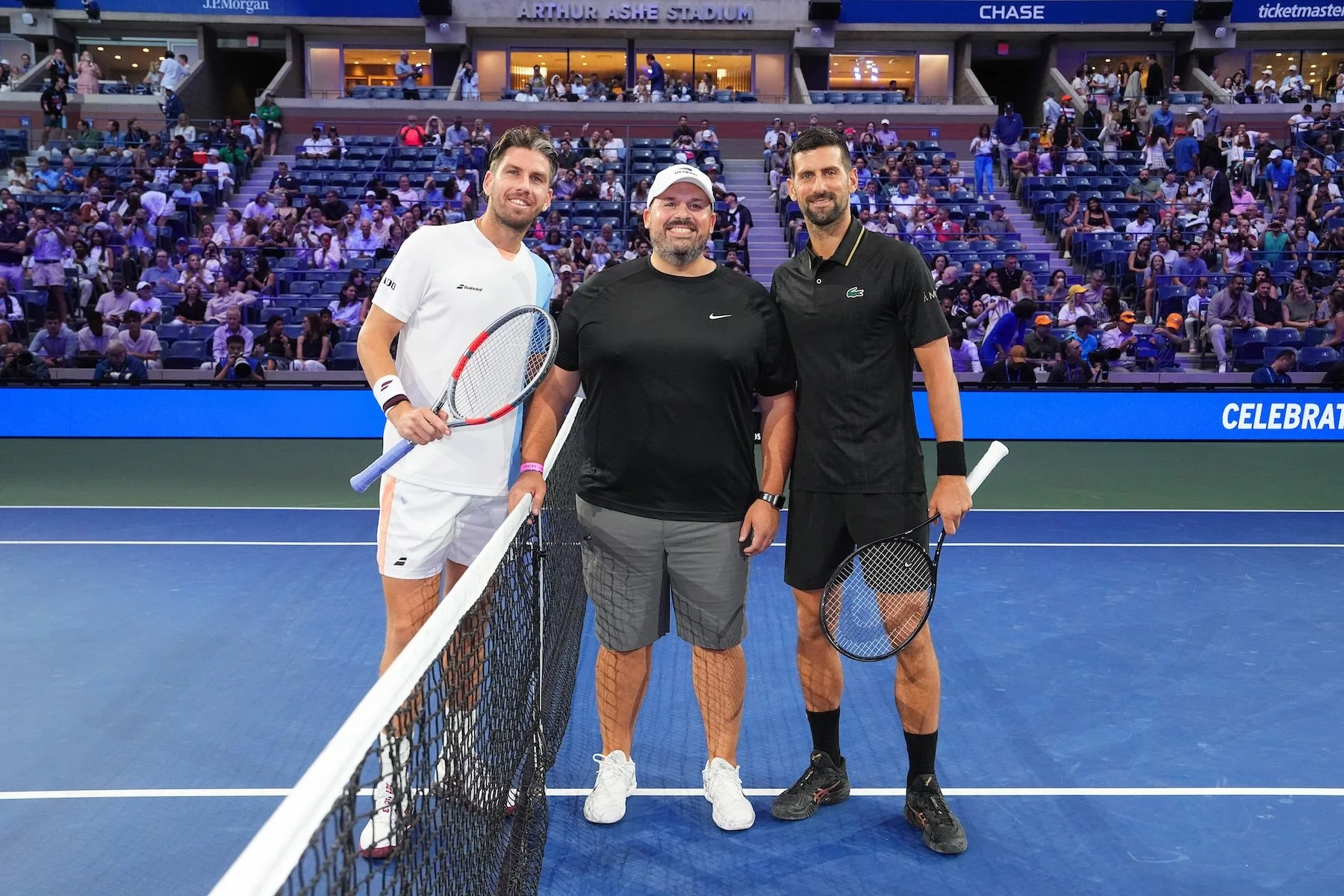 Just 24 hours earlier, Sev had no idea he’d be standing between Cameron Norrie and Novak Djokovic, flipping the coin on one of tennis’s biggest stages. All he knew was that his longtime friend, Adam Hutchinson — Director of Adult Competition at USTA and fellow high school tennis teammate — had invited him to attend the Open. For Sev, it was a dream years in the making.